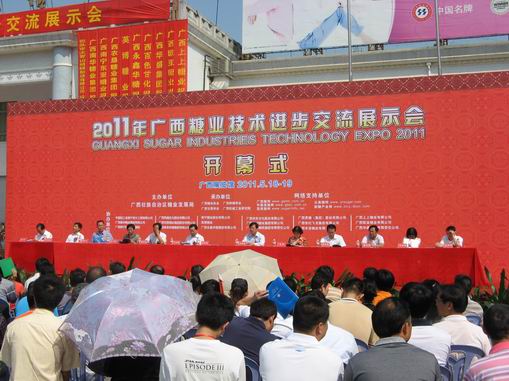 2011年5月18-19日,廣西首屆糖業(yè)技術(shù)進步交流展示會(簡稱“糖業(yè)技術(shù)展示會”)在南寧舉行。該展示會由廣西壯族自治區(qū)糖業(yè)發(fā)展局主辦,廣西糖業(yè)協(xié)會、廣西制糖學會、廣西甘蔗學會和廣西機械工業(yè)研究院共同承辦。參加糖業(yè)技術(shù)展示會的單位有:廣西壯族自治區(qū)工信委、農(nóng)業(yè)廳、農(nóng)機局等區(qū)直單位;廣西區(qū)內(nèi)主產(chǎn)糖市糖業(yè)發(fā)展局(糖辦);廣西區(qū)內(nèi)制糖企業(yè);國內(nèi)外參展企業(yè);中國糖業(yè)協(xié)會和廣東、云南、海南三省糖業(yè)協(xié)會等。到會領(lǐng)導(dǎo)主要有中國農(nóng)業(yè)科學院甘蔗研究中心主任李楊瑞、中國糖業(yè)協(xié)會副理事長兼秘書長閆衛(wèi)民、廣西糖業(yè)發(fā)展局副局長劉全躍、張魯賓等。會議規(guī)模500多人,是廣西糖業(yè)發(fā)展上規(guī)模最大的一次盛會。