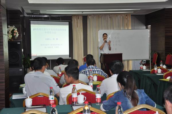 這次培訓(xùn)主要以創(chuàng)華工控pH自控系統(tǒng)系列產(chǎn)品為主,結(jié)合生產(chǎn)工藝,從理論到實(shí)際、系統(tǒng)結(jié)構(gòu)圖到實(shí)物,圍繞如何更好操作和維護(hù)設(shè)備展開(kāi)講解,主要內(nèi)容有《玻璃電極的使用和維護(hù)》、《pH自控系統(tǒng)電路原理分析》、《pH自控系統(tǒng)故障分析和排除》等。培訓(xùn)還邀請(qǐng)了著名制糖專(zhuān)家—廣西大學(xué)食品工程學(xué)院周少基教授及糖廠(chǎng)pH自控系統(tǒng)第一人—華南理大學(xué)黃揚(yáng)明博士就《蔗汁澄清與控制》和《可靠性工程與產(chǎn)品研制》等方面內(nèi)容進(jìn)行了講解。